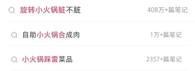 在大众点评平台上,多家旋转小火锅的评分在4分左右,连4.5分以上的店铺都少见;在小红书上,关于“旋转小火锅脏不脏”的话题下有高达408万+篇笔记,“小火锅踩雷菜品”“小火锅合成肉”的话题下有近2万篇笔记。