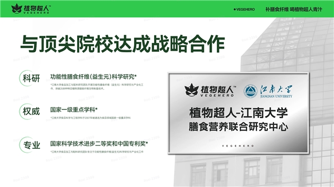 据悉,江南大学食品专业拥有我国该领域唯一的国家重点实验室,科研实力雄厚。江南大学食品加工与配料研究团队更是在国内率先开展功能性膳食纤维(益生元)科学研究与产业化工作,30余年深耕于此,荣获国家科学技术进步二等奖等重磅奖项,为植物超人青汁相关研发与打造提供了高标准的保障。