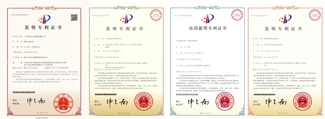 2014年中科中创成功研发独特的亚麻籽脱毒方法,并且一举拿下国家发明专利,打破技术壁垒。而后十年,中科中创沉浸钻研,获得了一种亚麻籽高效熟制脱氰工艺、一种亚麻籽的脱毒方法、亚麻籽粉碎机、亚麻籽粉的保健用途等共计11项国家亚麻籽相关专利技术。这些技术的突破不仅确保了亚麻籽的安全性与有效性,更极大地提升了产品的营养价值与口感体验,在减脂减重、代谢性疾病、营养补充等领域展现出了更广泛的应用前景。
