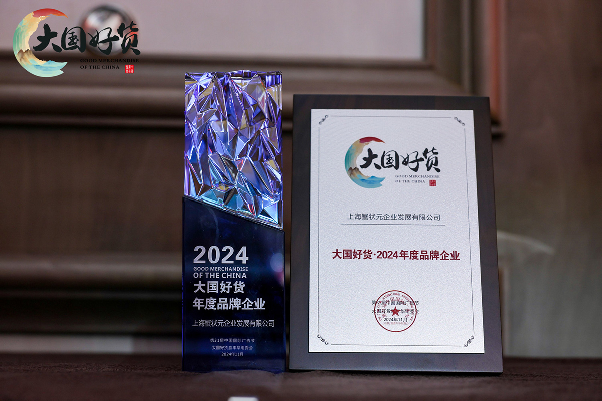 28日晚,第31届中国国际广告节交流晚宴暨大国好货2024年度品牌授牌仪式上,蟹状元凭借卓越的品牌表现与广泛的市场影响力,荣获“大国好货·2024年度品牌企业”殊荣,这既是对其品牌实力的有力证明,也是对其在推动行业发展、促进消费升级方面所做贡献的高度认可。