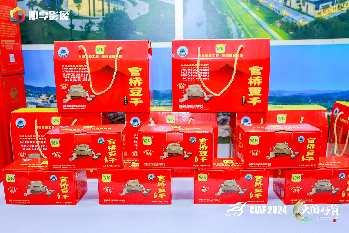 官桥镇围绕本次活动主题“国货之光·改变未来”,组织多家本地特色农特产参加,同时“官桥豆干”荣获2024年度大国好货“一县一品”特色品牌称号。在展馆内的官桥镇特色区,官桥豆干的生产过程、产品特点和品牌形象等元素完美呈现给参观者。官桥豆干历来以家庭作坊为主,属民间传统工艺,技艺独特,制作精巧,品质优异。