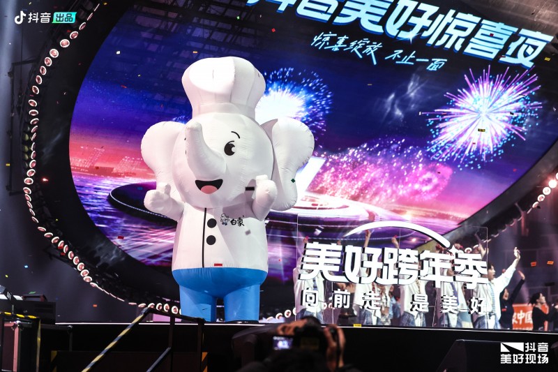 此次抖音美好惊喜夜还邀请了包括张碧晨、刘宇宁、金晨、谭健次、胡彦斌、回春丹乐队、陶喆在内的众多明星大咖,为抖音用户带来了长达四小时的视听盛宴。白象中国面IP人偶小象也惊喜登台,带着白象的温暖与活力,与现场观众亲密互动,为大家延续2024的美好记忆,为2025创造更美好的奇遇。
