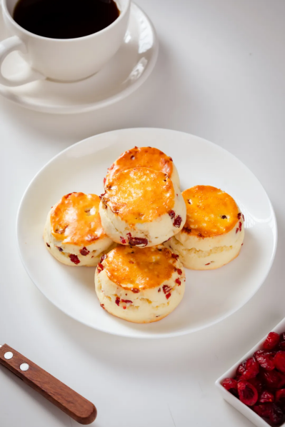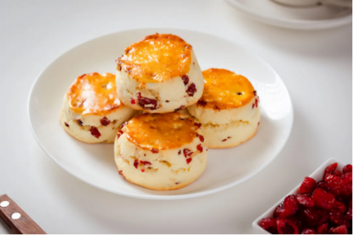 原味司康:以蔓越莓干为基础,搭配传统司康配方,保留蔓越莓的酸甜口感,同时提供扎实的口感体验。