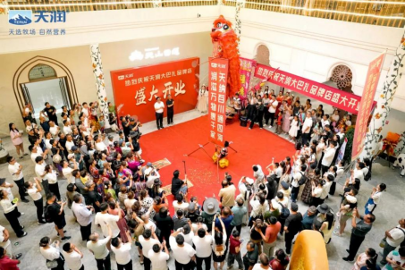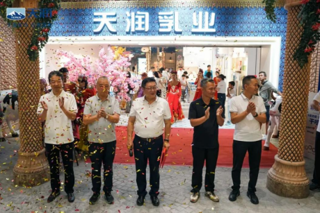 7月20日,天润乳业直营店在乌鲁木齐大巴扎步行街二期核心文商旅综合体——疆来城正式亮相开业。