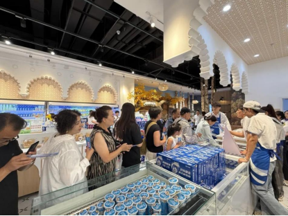 往来游客纷纷驻足,有的细细品尝新品酸奶的独特风味,有的认真了解店内活动详情,还有的排起长队,争相抢购天润乳业的网红爆款产品。来自河南周口的刘女士兴奋地说:“我和家人都是天润乳业的忠实粉丝,在我们那没有线下实体店,我们一直都是从线上购买。今天和家人来大巴扎旅游,恰巧赶上了开业盛典。店里商品种类繁多,我们还免费品尝了很多网红产品,体验感超棒,我们会一如既往地支持天润。”