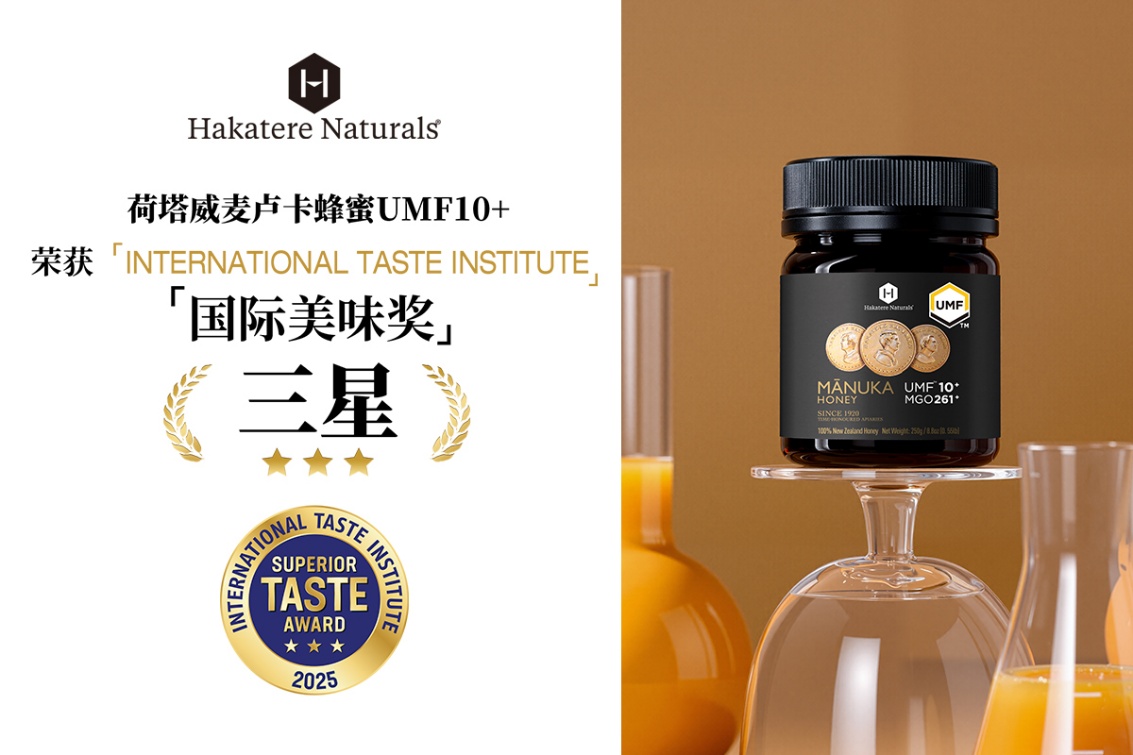 在被誉为"食品界奥斯卡"的2025国际美味奖评选中,新西兰荷塔威(HakatereNaturals)UMF10+麦卢卡蜂蜜征服评审团,摘得最高三星荣誉。作为全球最具公信力的食品评鉴机构之一,国际美味奖由200余位米其林/蓝带厨师组成的评审团,依据盲测形式对产品感官品质进行严苛评估。荷塔威凭借其标志性的"丝绸蜜质"口感——既保持麦卢卡蜂蜜特有的草本芳香,又以创新低温乳化技术实现丝绸般顺滑质地,在口感、香气、回味等维度均以逼近满分的成绩遥遥领先。