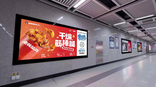 老韩煸鸡还在地铁重要站点投放大幅广告,通过线下传播,打造贯穿全城、联动多业态的地铁主题促销行动,以此来为干煸筋棒腿造势,其“单手吃更劲道”的宣传标语更是深入人心,也成为了广为人知的卖点。如此声势浩大的宣传,在中式炸鸡品类甚至小吃品类赛道中都是非常罕见的。