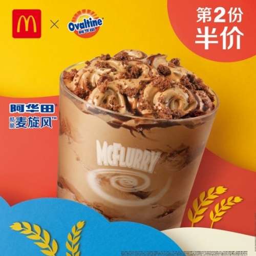 当春日的阳光洒在行人脸上时,如果你路过麦当劳甜品站,就可以看到阿华田的身影。有了前几次的经验,阿华田与麦当劳的第三次合作,推出了相当丰富的产品系列:阿华田酷脆麦旋风、阿华田酷脆华夫筒、阿华田珍珠奶茶、阿华田心冻角等,口感升级获得了一致好评,特别是阿华田酷脆麦旋风成为了人气产品,丝滑冰淇淋搭配层层浓郁阿华田酷脆酱,香甜美味到舌尖开花,一口下去醇厚香浓咔嚓脆,满足!
